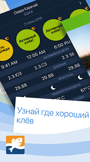 Общайся, делай фото, смотри где ловят рыбу. Узнай прогноз клева и будь на рыбалке в нужное время в правильном месте.